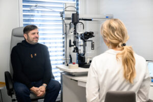 Vor der Behandlung wird Ihr Auge umfassend untersucht. Mithilfe modernster Diagnosetechniken wie der optischen Kohärenztomographie (OCT) wird der Zustand der Netzhaut genau analysiert.